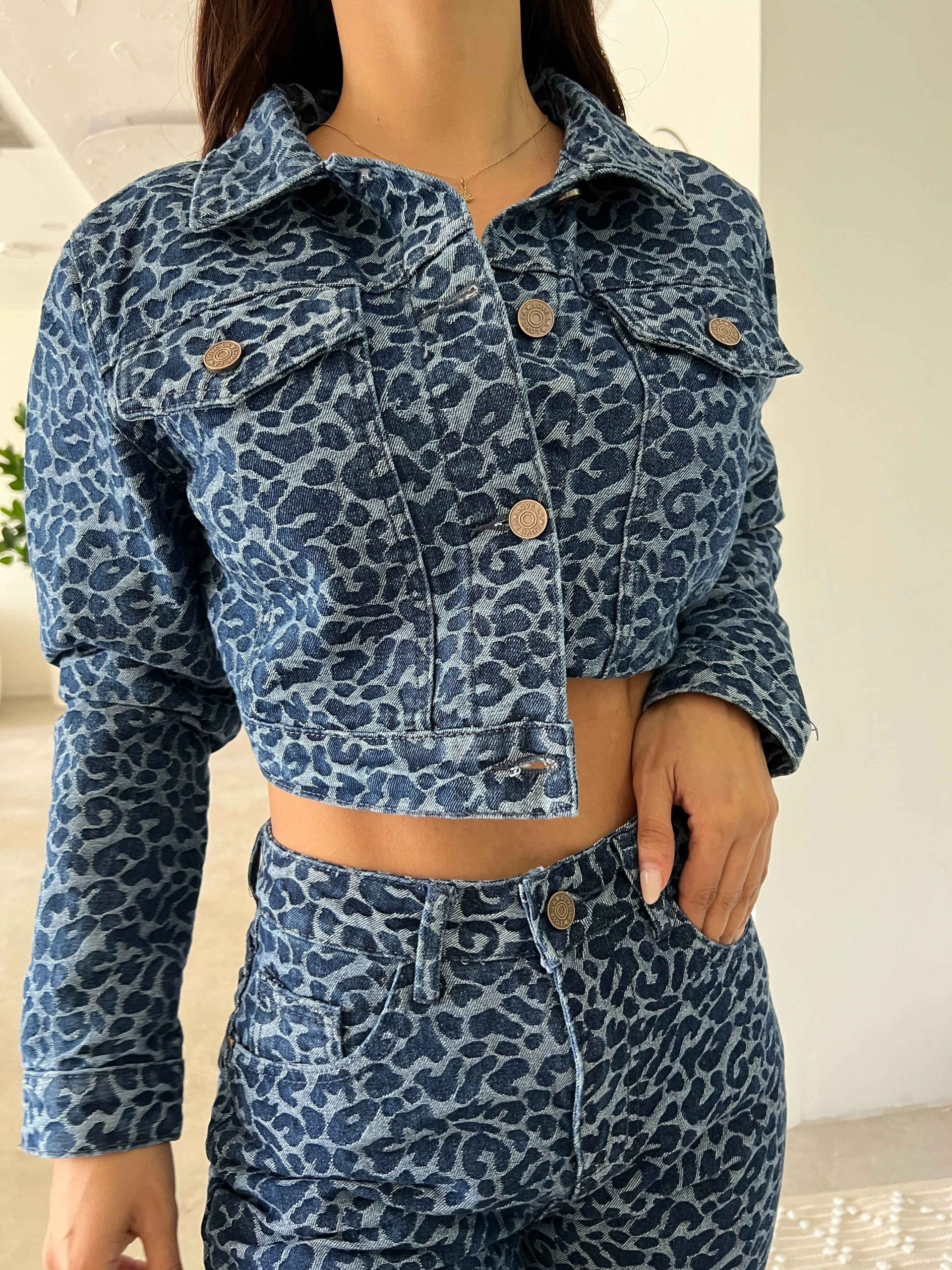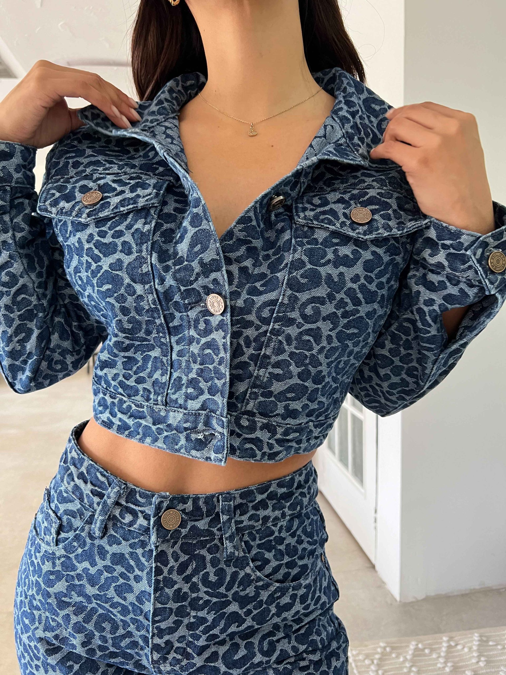 Chaqueta de jean con cierre y perlita