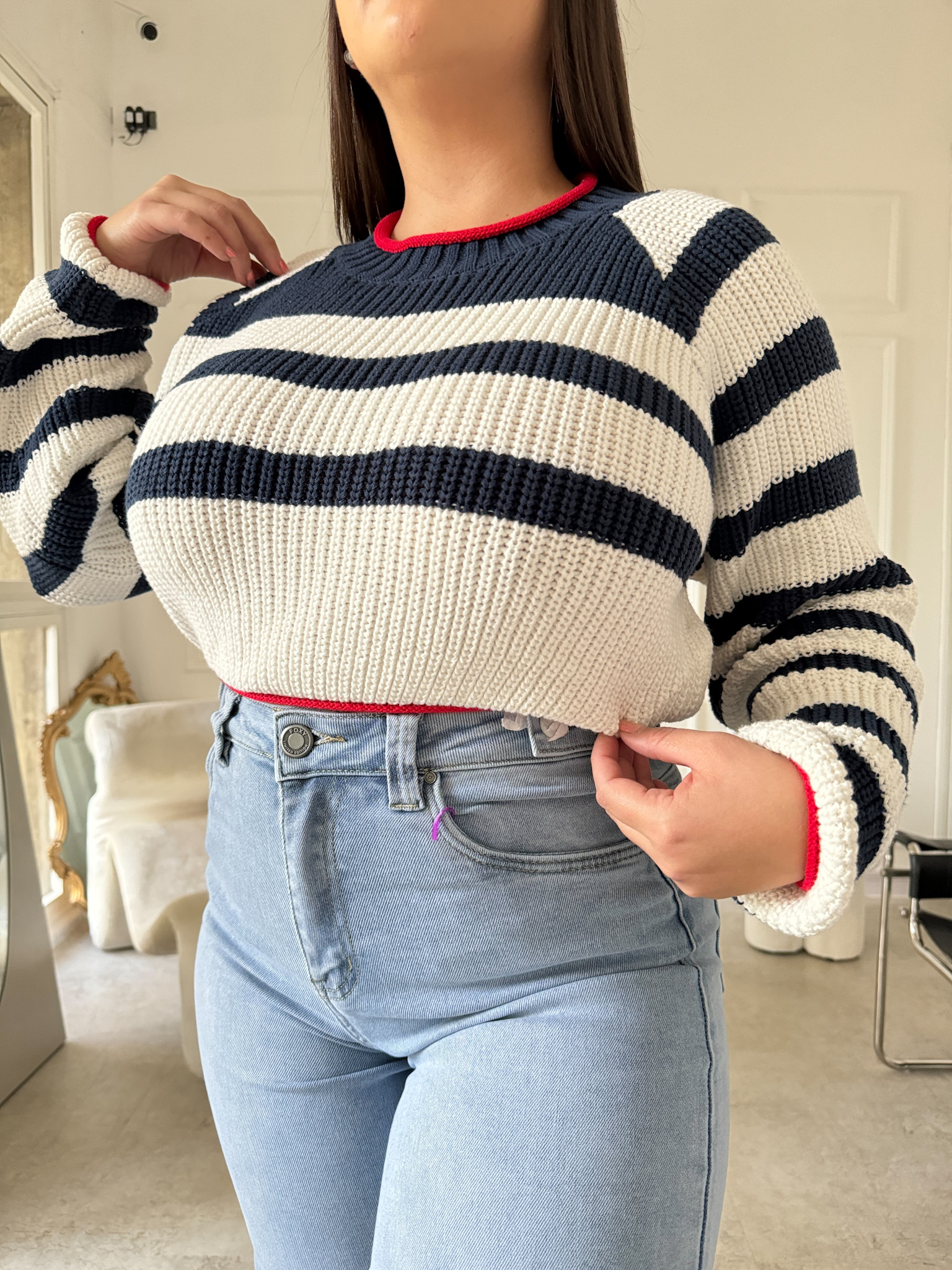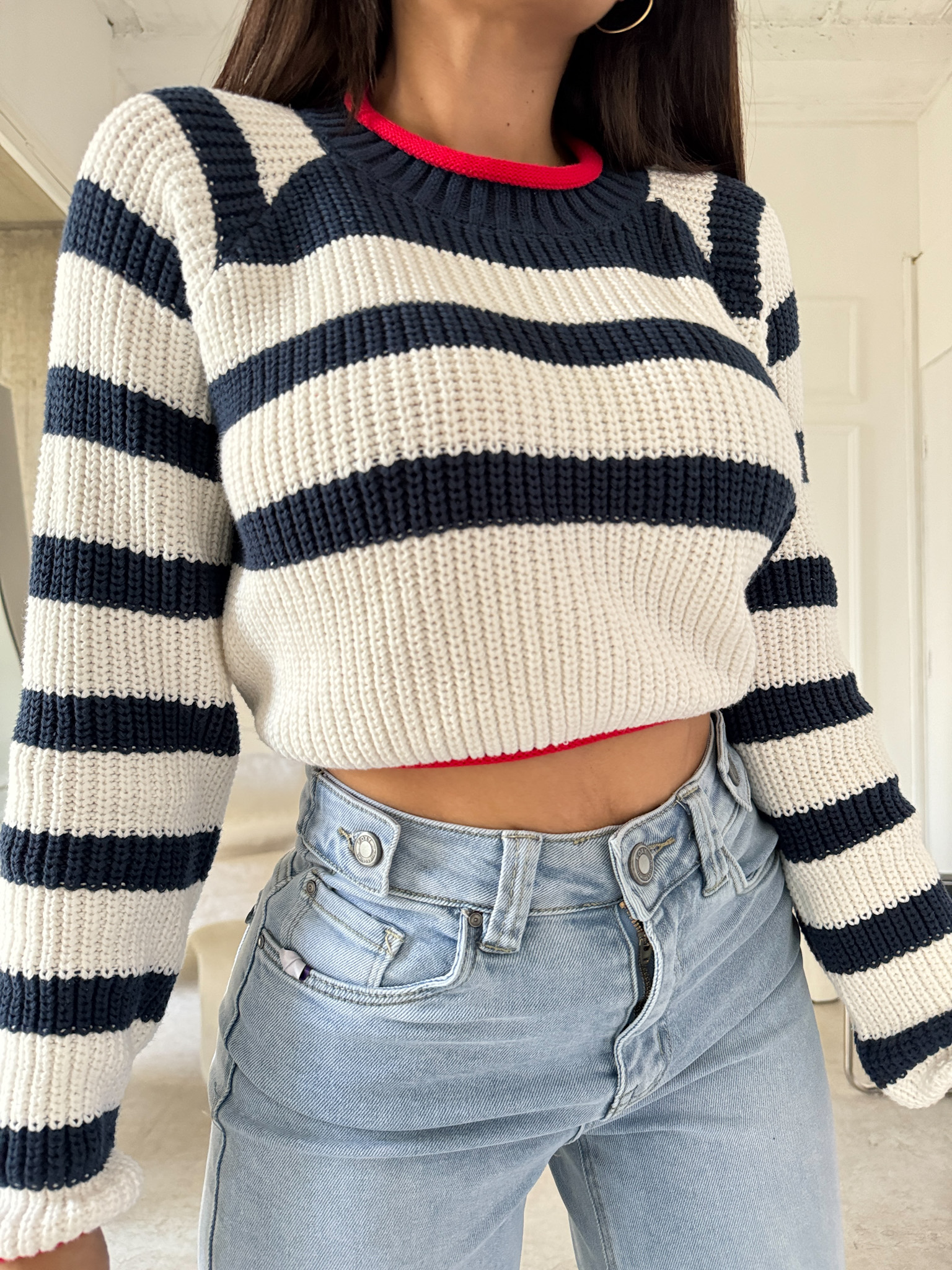 Suéter Tejido con Franjas Blancas