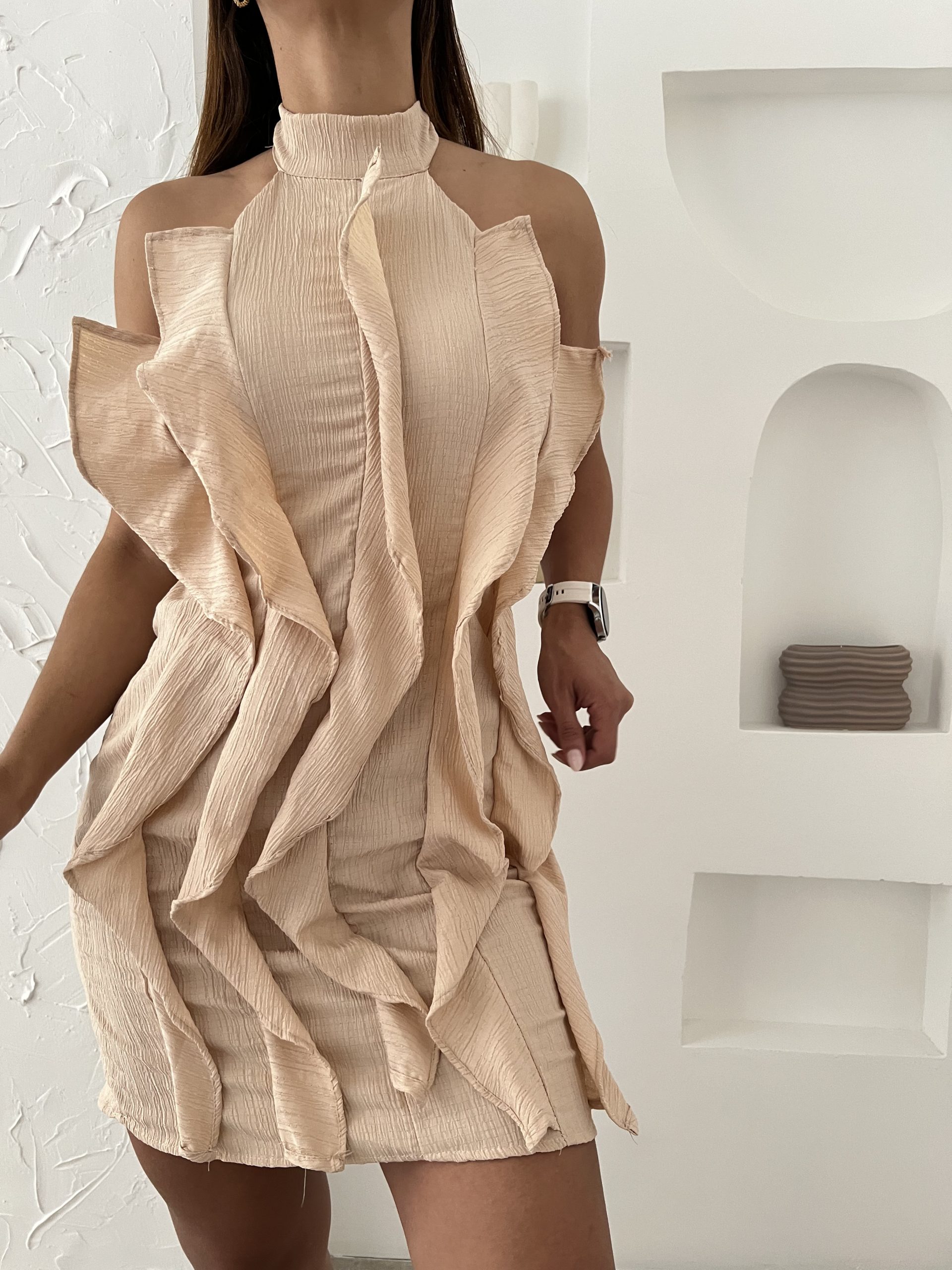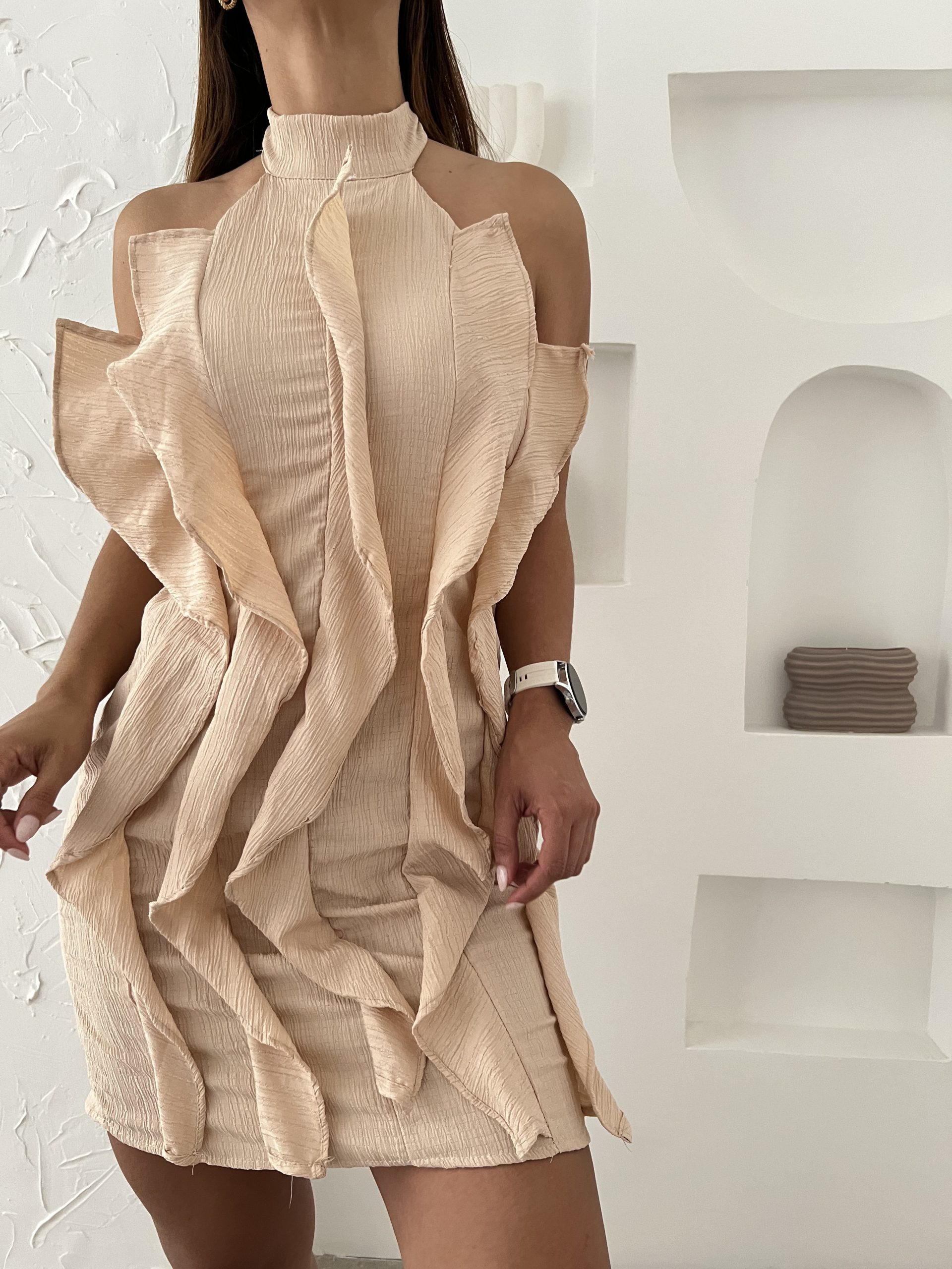 Vestido al cuello con volados